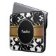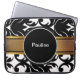Damask-laptophoezen met monogram ruimte om een naam of initialen en een zwarte en witte achtergrond toe te voegen die uw laptop, netbook of tablet in stijl beschermt. past 15-inch mobiele apparaten.
