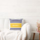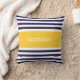 Elegante en moderne nautische Sierkussennen of kussens met een eenvoudig, modern en stijlvol gestreept patroonontwerp dat aangepast is met jouw naam in een preppy lettertype. Navy Blue en witte verticale strepen contrasteert met een gele achtergrond van kleurblokken. Pas je cadeau aan door je eigen naam of initiaal toe te voegen. Kies uw eigen doopvont en kleuren om het uw te maken. Dit trendy ontwerp zal een groot geschenk voor jezelf of iemand speciaal maken en elk thuis, kantoor, boot of rug verbeteren.