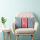 Monogram marinesurroe Blauwe Stripes & Coral Kussen