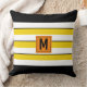 Geef uw binnen- of buitenliving een frisse uitstraling met deze moderne kussen dat voorzien is van moderne kleurblokken, vette strepen en een aanpasbaar initiaal. Helder gele, oranje en zwarte zonnige tinten brengen een vleugje vrolijkheid in uw woonkamer, veranda of patio. Maakt een perfect huiswarmingscadeau voor nieuwe huiseigenaren.