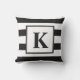Monogram moderne zwarte en witte strepen buitenkussen