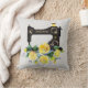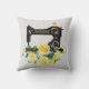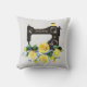 Het naaiwerk van de kussen is voorzien van een zwarte naaimachine op een zeer lichte grijze achtergrond, voorzien van uw gekozen monogram en een lasterlijk boeket van gele bloemen. Bewerk gewoon het monogram. Uw keuze uit stijlen en formaten. Mooie accenten voor elke naaikamer of slaapkamer.
