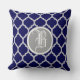 Monogram Navy Blue Quatrefoil Pattern Kussen