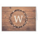Monogramontwerp voor Kerstmis met een deklaag en sneeuwdecoratie op een stevige houten achtergrond