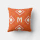 Monogram Sinaasappel Terracotta en Ivoor Geometrische Cirkel Diamond Gekoppelde Vierkanten Patroon Kussen Retro Gepersonaliseerd
