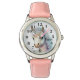 Een roze genummerd gezicht E horloge voor meisjes ontworpen met een Schattige paard kunt u haar naam toevoegen