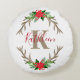 Monogram Red Green Kerstmis Floral Antlers Rond Kussen