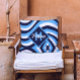 Monogram retro 70s Navy Blue Blauwgroen psychedeli Kussen