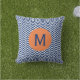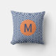 Monogrammed royal blue met oranje accent chevron patroon vierkante kussen.