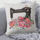 Het naaien van de kussen met de hengel is voorzien van een zwarte naaimachine op een zeer lichte grijze achtergrond, voorzien van uw gekozen monogram en een lasterlijke bouquet van roze bloemen. Bewerk gewoon het monogram. Uw keuze uit stijlen en formaten. Mooie accenten voor elke naaikamer of slaapkamer.