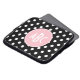zwart-wit puntpatroon met roze monogrammed cirkel.