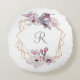 Monogram Roze Witte Magnolias Bird Lijst Rond Kussen
