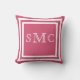 MONOGRAM Solide rasberry rose blanc clair coussin