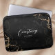 Trendy laptop-hoesje met zwarte en gouden marmer achtergrond en chic calligraphy font for jouw naam or initialen. Het hoesje van de elektronica van het manuscriptmonogram omvat ruimte om jouw naam of initialen toe te voegen, kunt u uw bedrijfs logo zelfs toevoegen om het meer collectief te maken. Deze stijlvolle en elegante zwarte laptoptas is zeker een indruk die ook onderweg uw laptop beschermt.