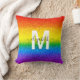 Maak een verklaring met uw huisdecor met deze gepersonaliseerde glitter en de glam LGBT werpen kussen om uw steun te shows. Het gestreepte ontwerp van de rode regenboog omvat tinten van rood, oranje, geel, groen, blauw en paars in faux glitter en sparkles met een monogram en een naam die in manuscript moeten worden aangepast. Show je trots!