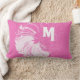 Een abstract vierkant op een hete roze achtergrond maakt een interessante monogrammed werpkussen. Zorg ervoor om het witte initiaal in uw te veranderen om uw décor te personaliseren.