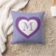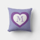 Deze kussen hebben een wit en paars hart met aan de ene kant een monogram initiaal en aan de andere kant een zich herhalend paars hartpatroon. Klik op de knop "Aanpassen!" om het paarse afbeelding van het hart opnieuw te rangschikken/weer in positie te brengen, achtergrondkleur te wijzigen en/of tekst aan te passen.