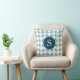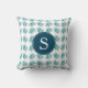 Dit monogram gooien kussen heeft originele waterverf zeeen schildpadden in een patroon van turquoise blauw. Gepersonaliseerd met uw initiaal in wit over marineblauw. Ga naar www.zazzle.com/dotellabelle Kunst en design van Victoria Grigaliunas om bijpassende collegeslaapkamer en slaapkamerinrichting te bekijken