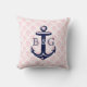 Monogramed Blauw Nautisch Anker & Roze Damasks Kussen