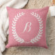 Elegant monogramed licht koraal rood tonnen linnen en floraal kreupeltje in wit. Linen look is een afbeelding en geen echt linnen.