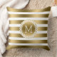 Monogramed White & Gold Stripes & White Wreate Kussen