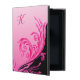 Elégant coque de style iPad 2/3/4 folio fait en rose pâle dégradé, avec des graphiques d'un rose chaud fleuris, à travers le fond, et noir, dans les coins. Personnalisez le monogramme rose d'une lettre. Belle façon de protéger votre appareil électronique et d'avoir l'air élégant aussi.