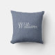 Intrigerende blauwe bogen met witte stippen versieren dit monogrammatische werpkussen.