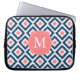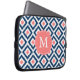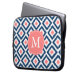 Monogrammed Blue Coral Diamond Ikat Pattern Laptop Sleeve
