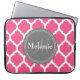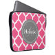 Monogrammed Bright Pink & Grey Quatrefoil Laptop Sleeve