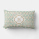 Een stijlvol en verfijnd, frans en Marokkaans geïnspireerd geometrisch patroon in goud en eggshell blauw, bleke blauwgroen groene blauwe tinten. Het kan worden gepersonaliseerd met uw eigen monogram of initiaal op het quatrefolieontwerp op de voor- en achterkant van deze decoratieve kussen. Kunstwerk en ontwerp © Chrissy H. Studios, LLC. Alle rechten voorbehouden.