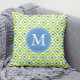 Monogrammed Green Blue Diamonds Ikat Pattern Kussen