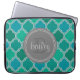 Monogrammed Grey Blauwgroen Modern Lattice Pattern Laptop Sleeve