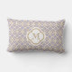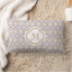 Een stijlvol en verfijnd, frans en Marokkaans geïnspireerd geometrisch patroon in gouden en bleke paarse lavenertinten. Het kan worden gepersonaliseerd met uw eigen monogram of initiaal op het quatrefolieontwerp op de voor- en achterkant van deze decoratieve kussen. Kunstwerk en ontwerp © Chrissy H. Studios, LLC. Alle rechten voorbehouden.