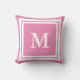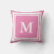 Deze roze en witte kussen hebben een groot wit initiaal in het midden. U kunt dit personaliseren werpen kussen met het monogram van de ontvanger.