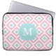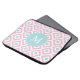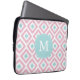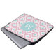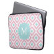 Monogrammed Pink Mint Diamond Ikat Pattern Laptop Sleeve