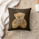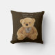 Monogrammed newborn's Teddy bear throw pillow monogrammed with name and date. It's dark brown on one side and light brown on the other. Available in different colors, sizes and materials.