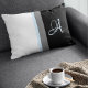 Monogrammed White, Blue, Grey, Black Striped Kussen