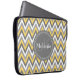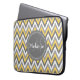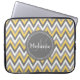 Monogrammed Yellow & Gray Chevron Pattern Laptop Sleeve