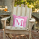 Monogrammen roze witte strips kleurig buitenkussen