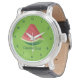 Tranches de pastèque rouge mûre. Texte personnalisé.