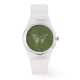 Cette conception comprend un papillon à queue épaisse avec des marques roses et vertes et un tissage celtique sur les ailes et le corps. Une aile montre le tissage sur le noir et l'autre sur les marques roses et vertes. Cette montre est disponible dans une variété de couleurs, de tailles et de styles, y compris des tailles pour les enfants et les adultes.