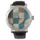 © Mike Schick / Wild Apple. Une image abstraite contemporaine en bleu, marron et blanc. L'image est faite de cercles et de carrés.