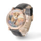 Montre vintage en or rose avec bracelet marron