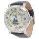 Montre Ancienne carte marine/voilier/ancre/roue silhouett