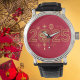 Célébrez l'année du serpent avec style avec cette montre 2025 magnifiquement conçue. Dotée de motifs chinois dorés complexes, dont un serpent, des lanternes et des symboles positifs sur un arrière - plan rouge vif, cette montre est parfaite pour sonner dans le Nouvel An chinois. Le bracelet en cuir noir élégant vient compléter le design audacieux, ce qui en fait un accessoire sophistiqué pour toute occasion festive. Idéal pour donner ou ajouter une touche culturelle à votre collection, ce garde-temps combine tradition et élégance dans un ensemble époustouflant.