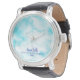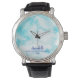 C'est une montre à thème ciel vraiment facile à customiser, pour ce modèle vous n'avez qu'à ajouter le nom. Il s'agit d'un grand cadeau personnalisé pour les anniversaires, la remise des diplômes, Noël, vacances, comme un cadeau d'appréciation, et pour toute occasion spéciale en général. Eléments sur la composition du design, nuages et ciel, couleurs bleues et lettrage typographie.