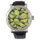Tranches de citron et feuilles. Motif sans couture. Couleur arrière - plan personnalisée. Texte personnalisé.