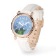 Jolie montre personnalisée avec fleurs d'hydrangée bleue et initiales monogrammes. Montré sur l'un des nombreux styles. Ajoutez trois initiales, en blanc, sur le dessus des fleurs bleu clair. Cela fait un cadeau merveilleux pour toute femme et surtout un jardinier.