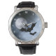 Wrist Watch avec une pleine lune et des chauves-souris volantes dans les nuances de bleu brumeux et gris.