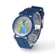 Montre élégante avec chiffres blancs qui présente l'image photo d'un magnifique Peacock bleu avec des plumes fantastiques colorées. Sélectionnez votre montre dans plusieurs styles.